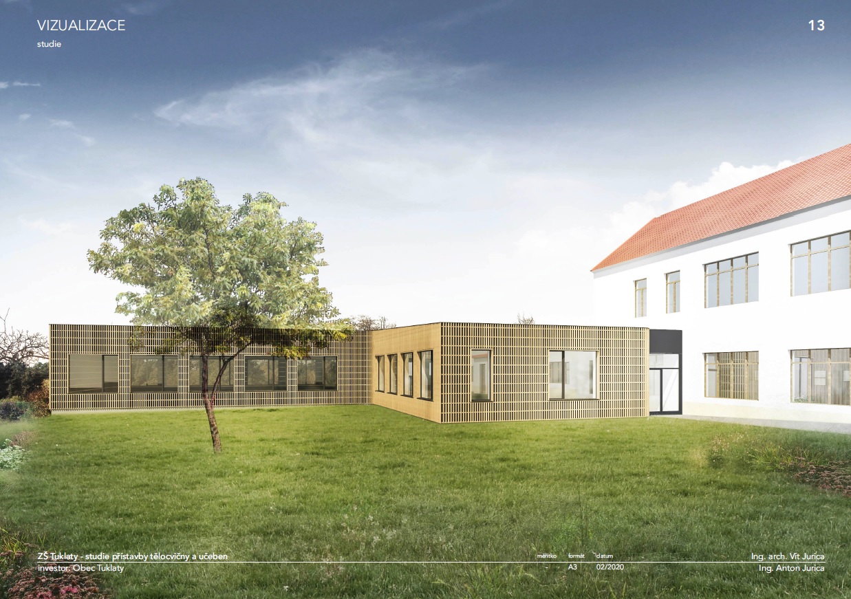 K tělocvičně máme připravenou projektovou dokumentaci, která byla dokončena na začátku roku 2024. Rozpočet stavby je 30,3 mil. Kč.
