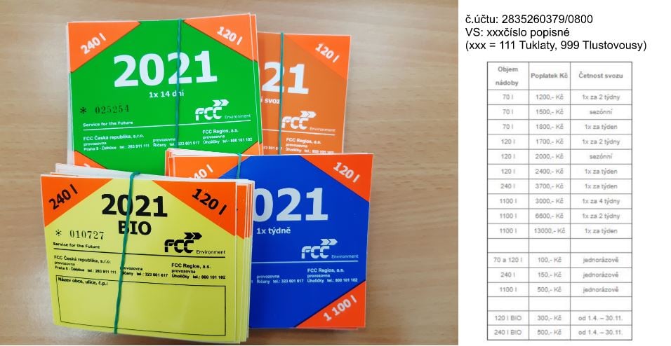 Vše o poplatcích je zde: https://tuklaty.cz/praktické informace/poplatky/