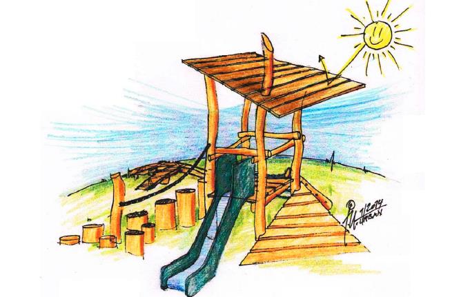Rádi bychom, aby zde vzniklo dětské přírodní hřiště z akátového dřeva, o kterém se tvrdí, že vydrží na věky.